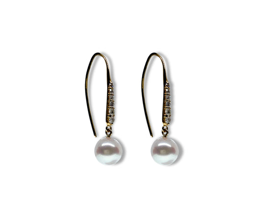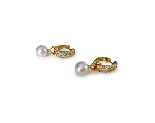 Diamond Huggies with Akoya Pearl Drop (Detachable)